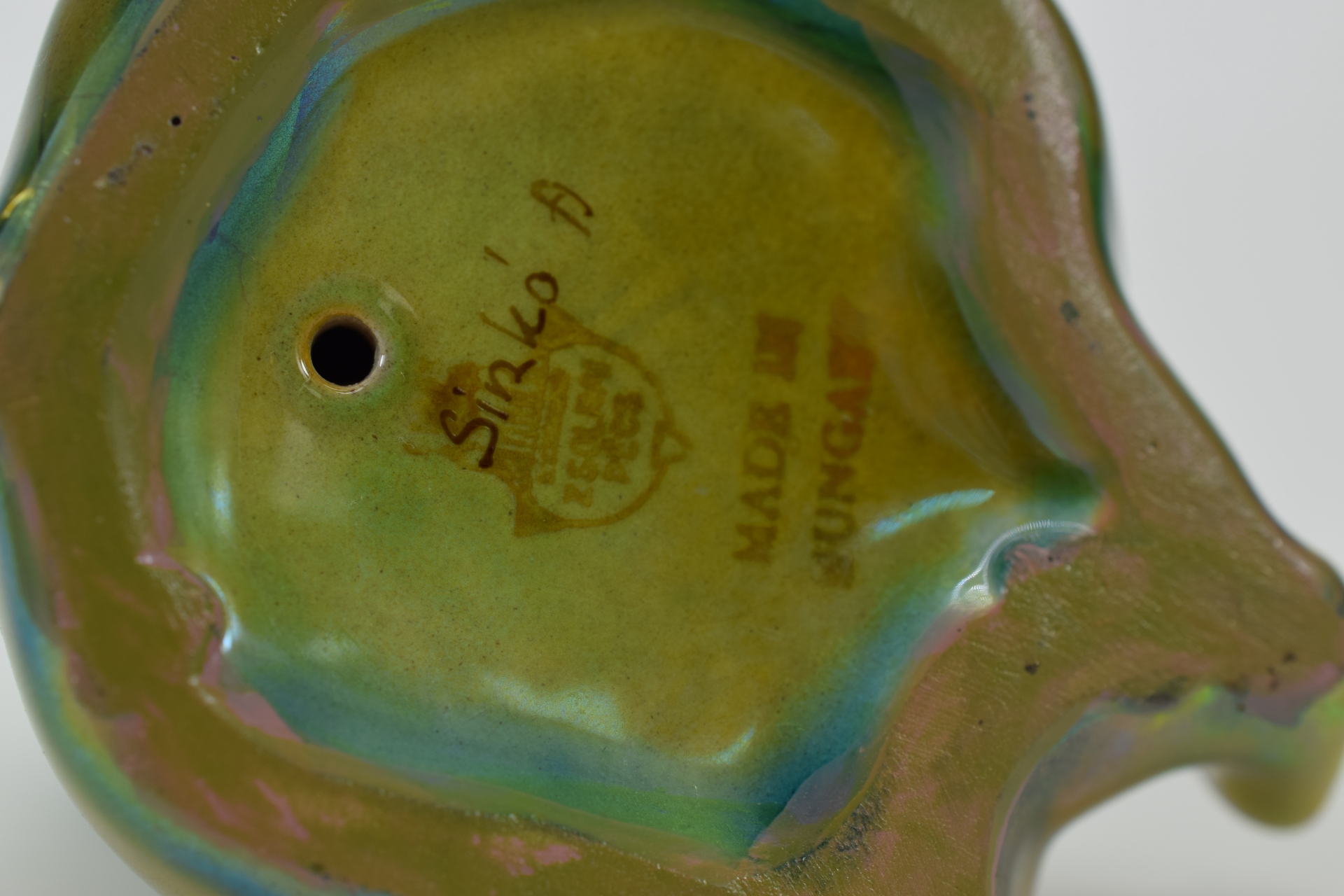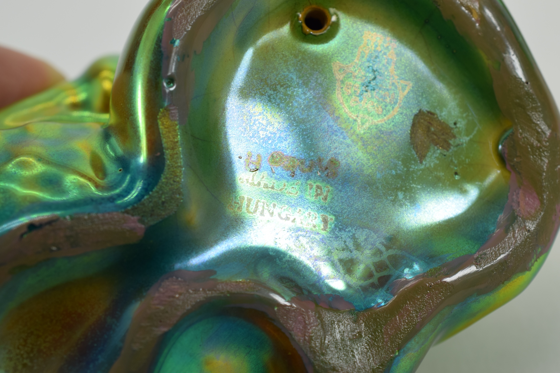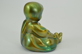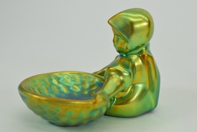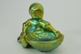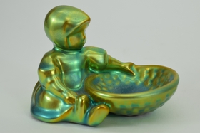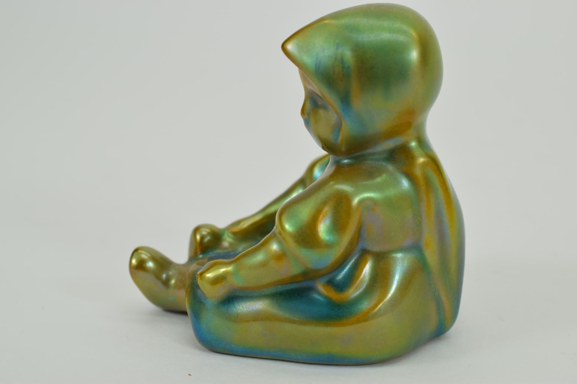 438 - 2 GREEN/YELLOW ZSOLNAY PORCELAIN CHILDREN FIGURES