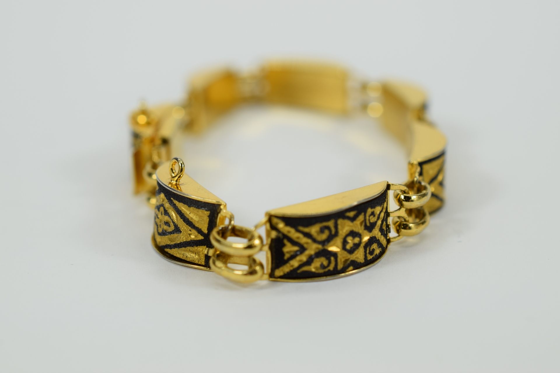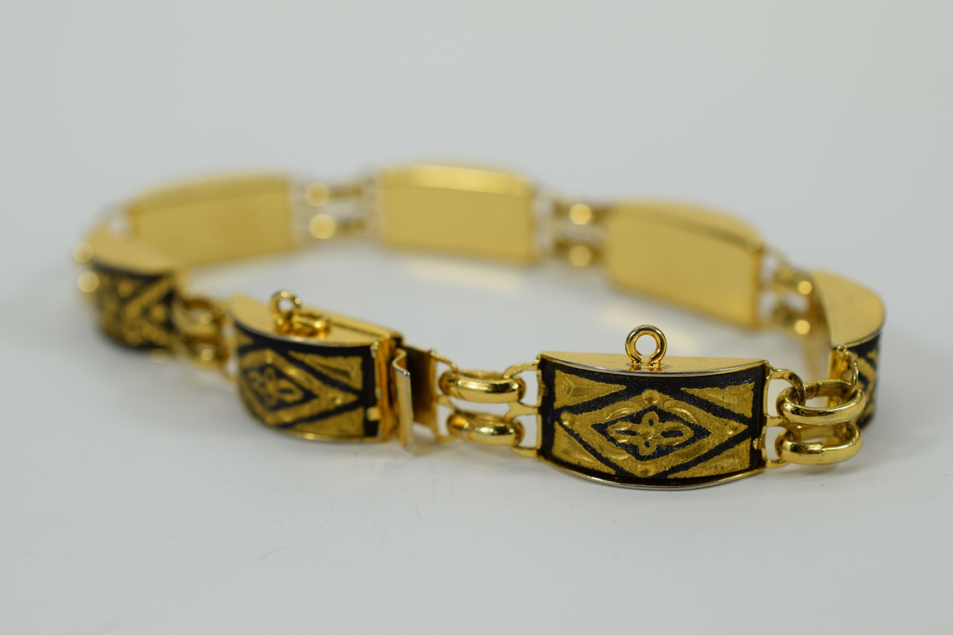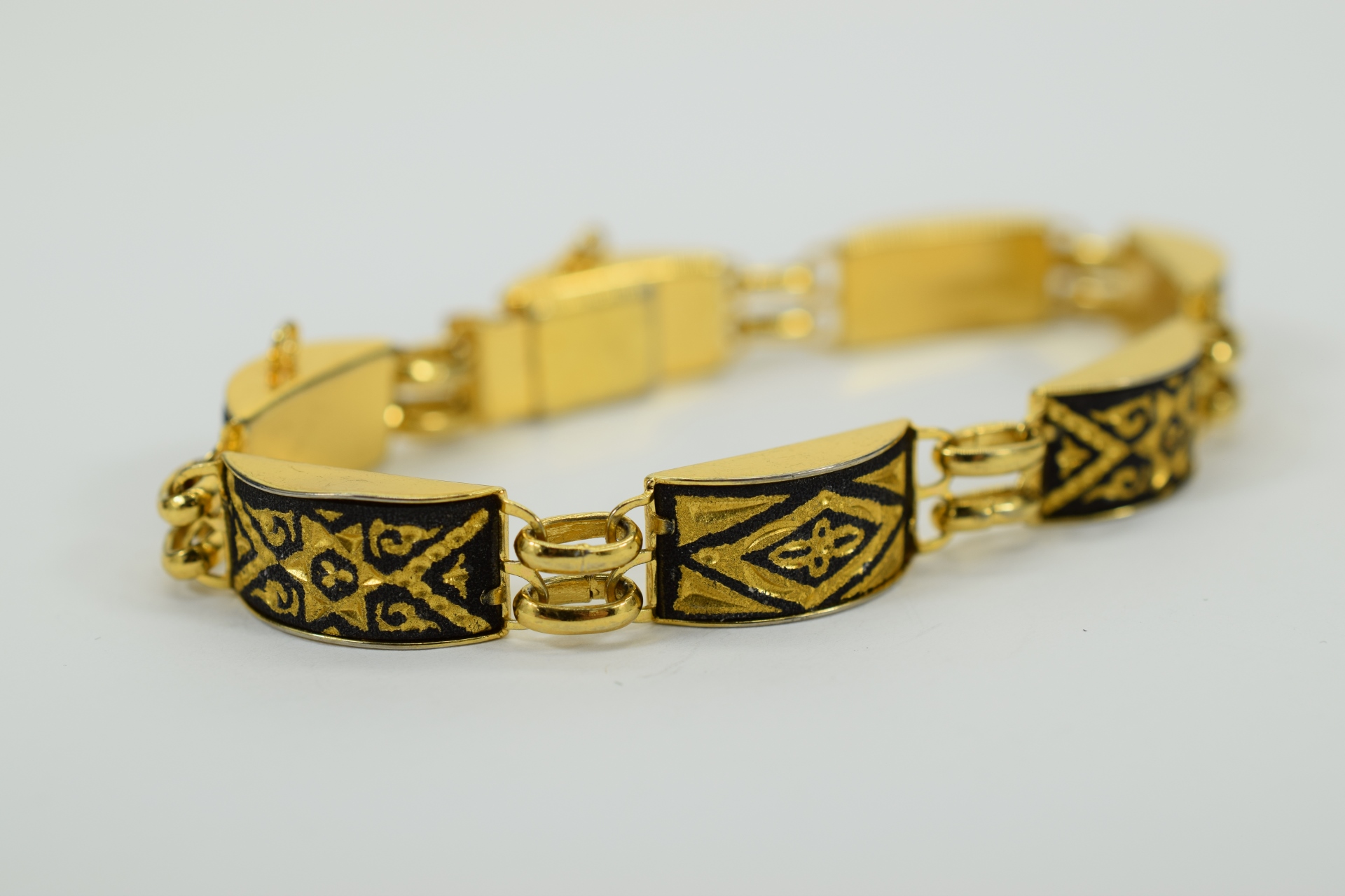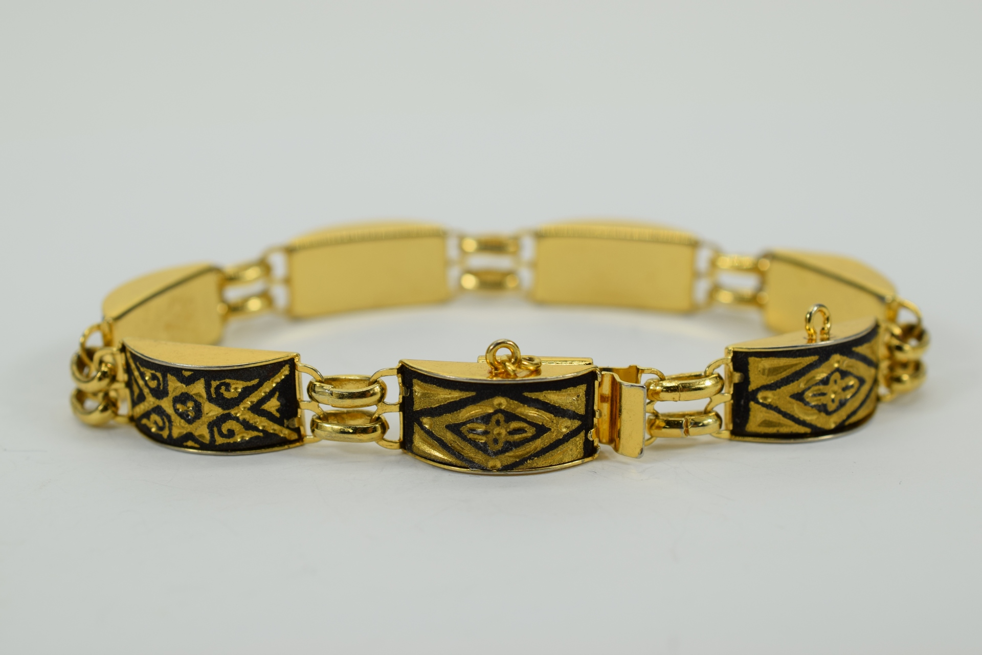 479 - VINTAGE GOLD TONE & BLACK ENAMEL BRACELET