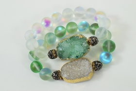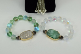 491 - ABALONE PENDANT NECKLACE & DRUZY BRACELETS