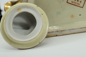 Beautiful floral hand painting throughout depicting Japanese women on a canoe, mountains and cherry blossoms in the horizon. Measures 10-1/4” W x 9-1/2” H x 4-1/4” D. Weighs approx. 3lbs.