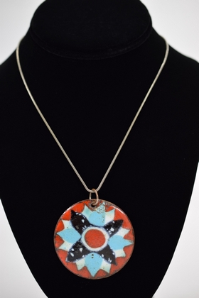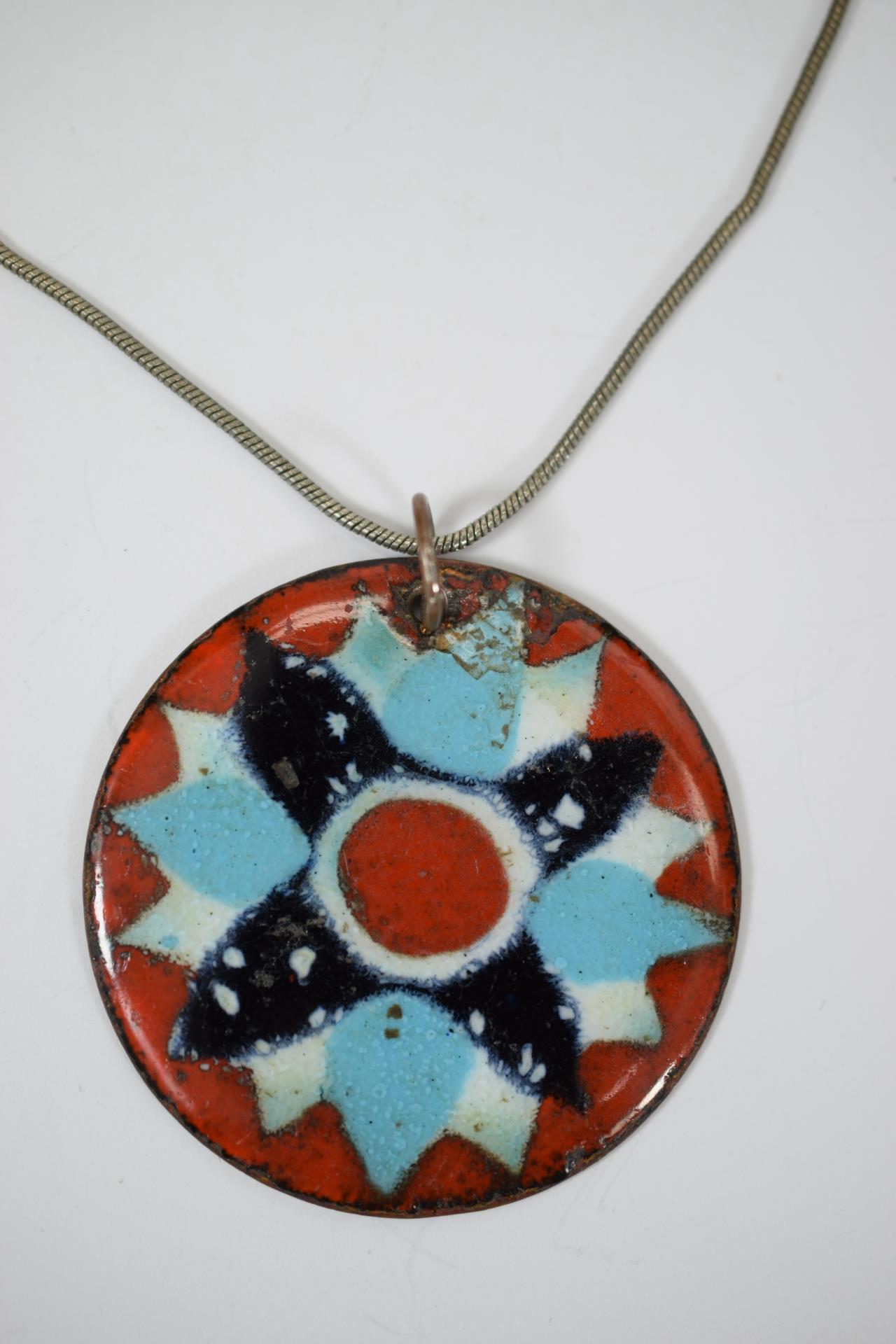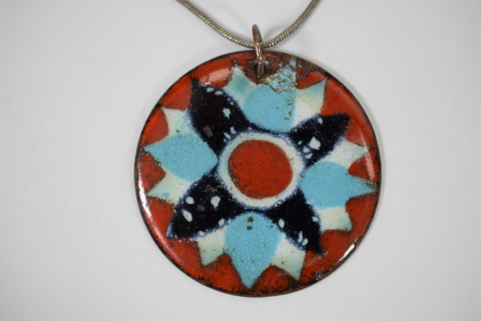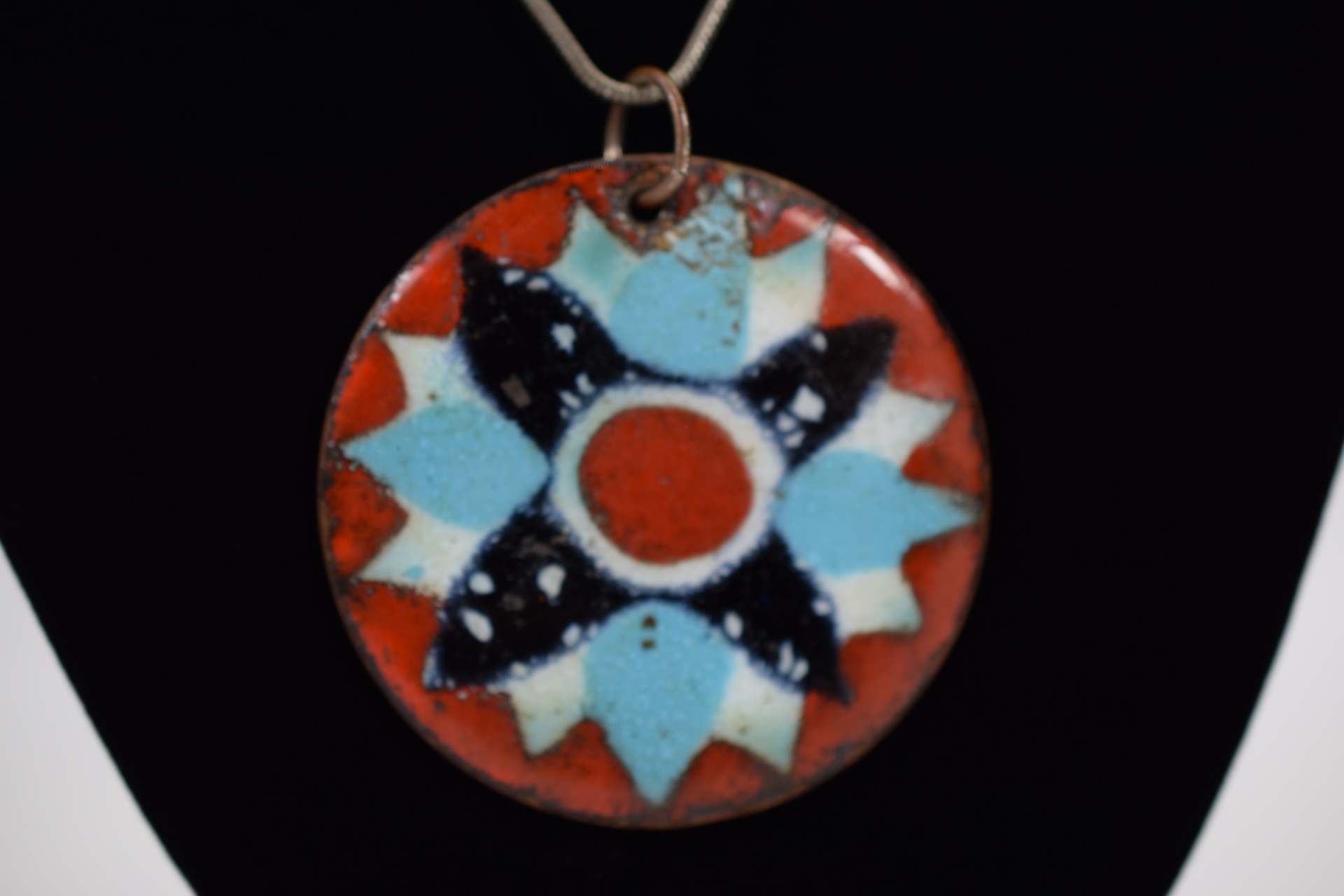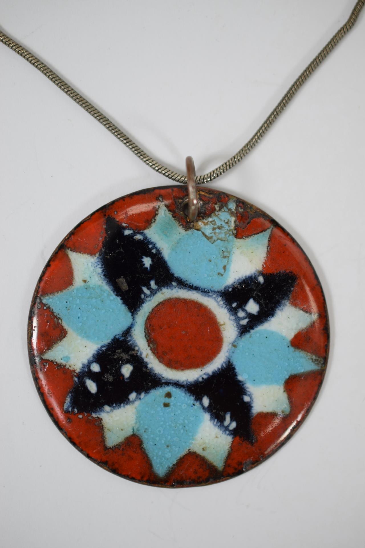 519 - ENAMEL ON COPPER MEDALLION PENDANT NECKLACE