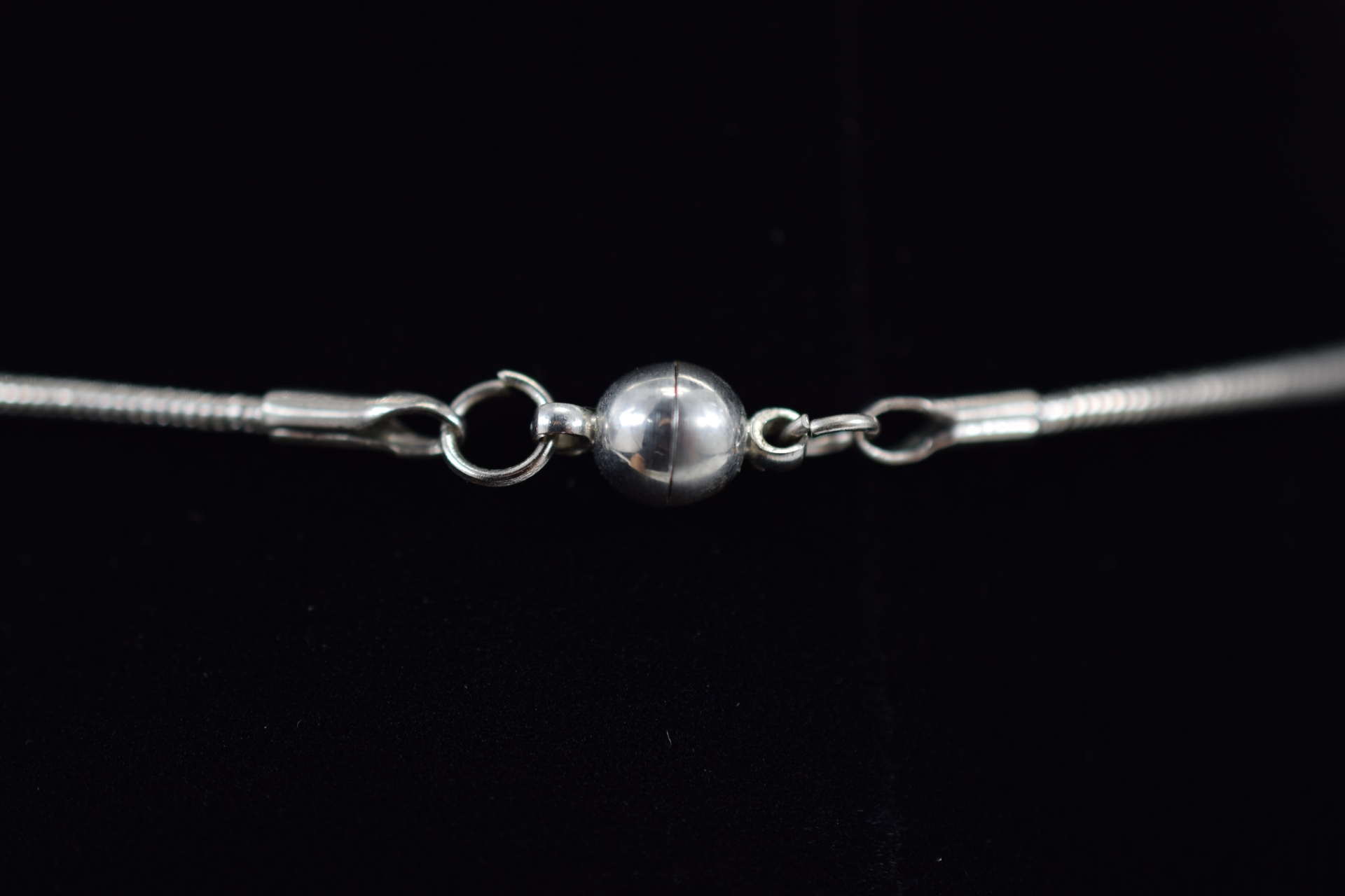 Resembles a flower, sunburst, or possibly compass. Pendant measures approx. 2” diameter. Necklace measures approx. 15” L. Total weight 29.6g.
