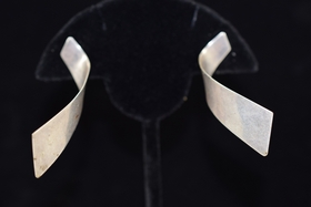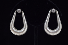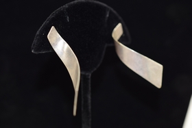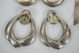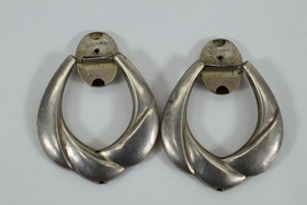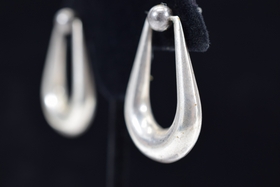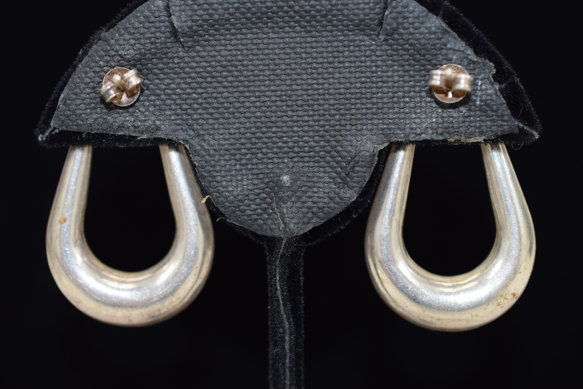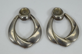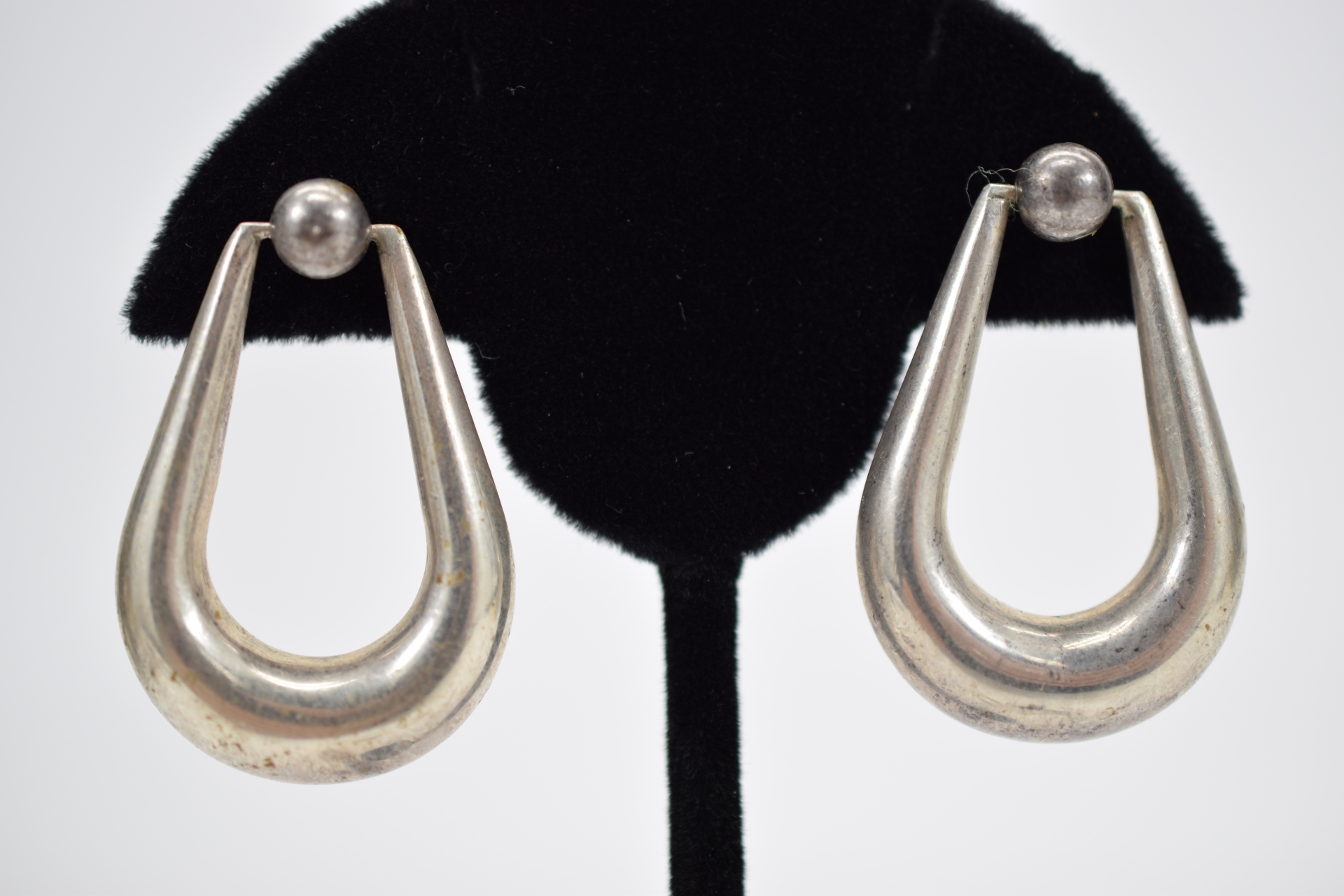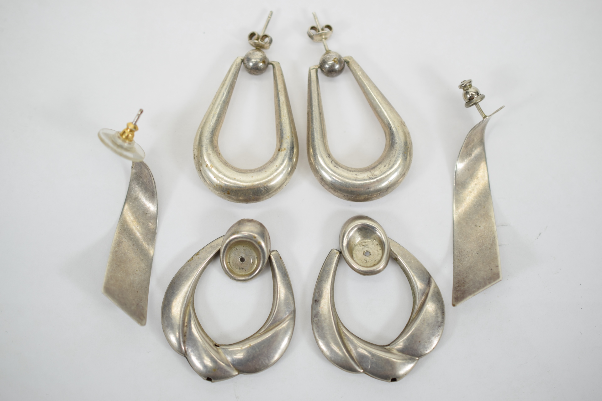 Two pairs of vintage sterling hoops, and one pair of dangle wavy earrings. Total weight 17g.